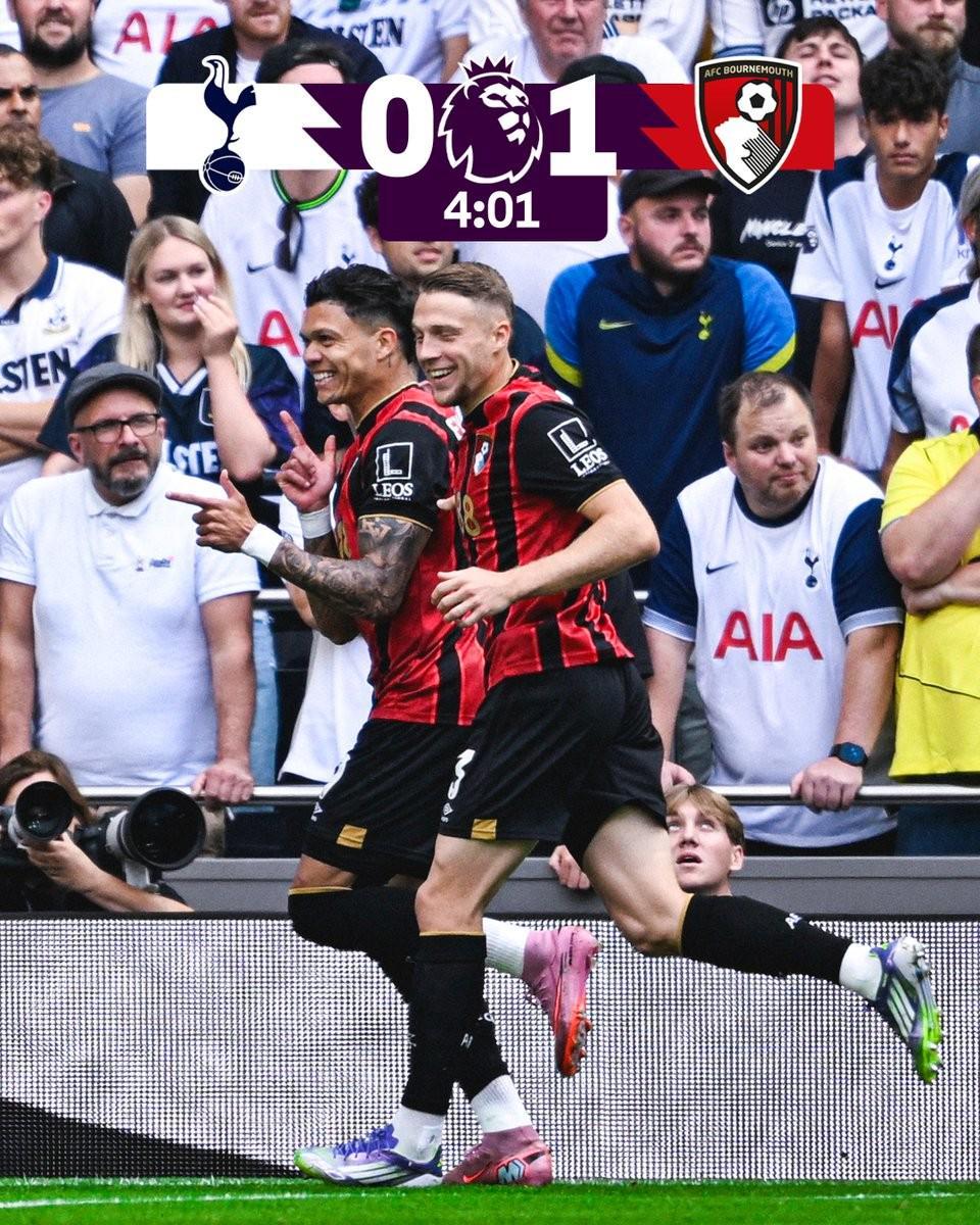 此役主场对阵伯恩茅斯,维卡里奥把守的热刺球门在比赛第5分钟被埃万尼尔松攻破。