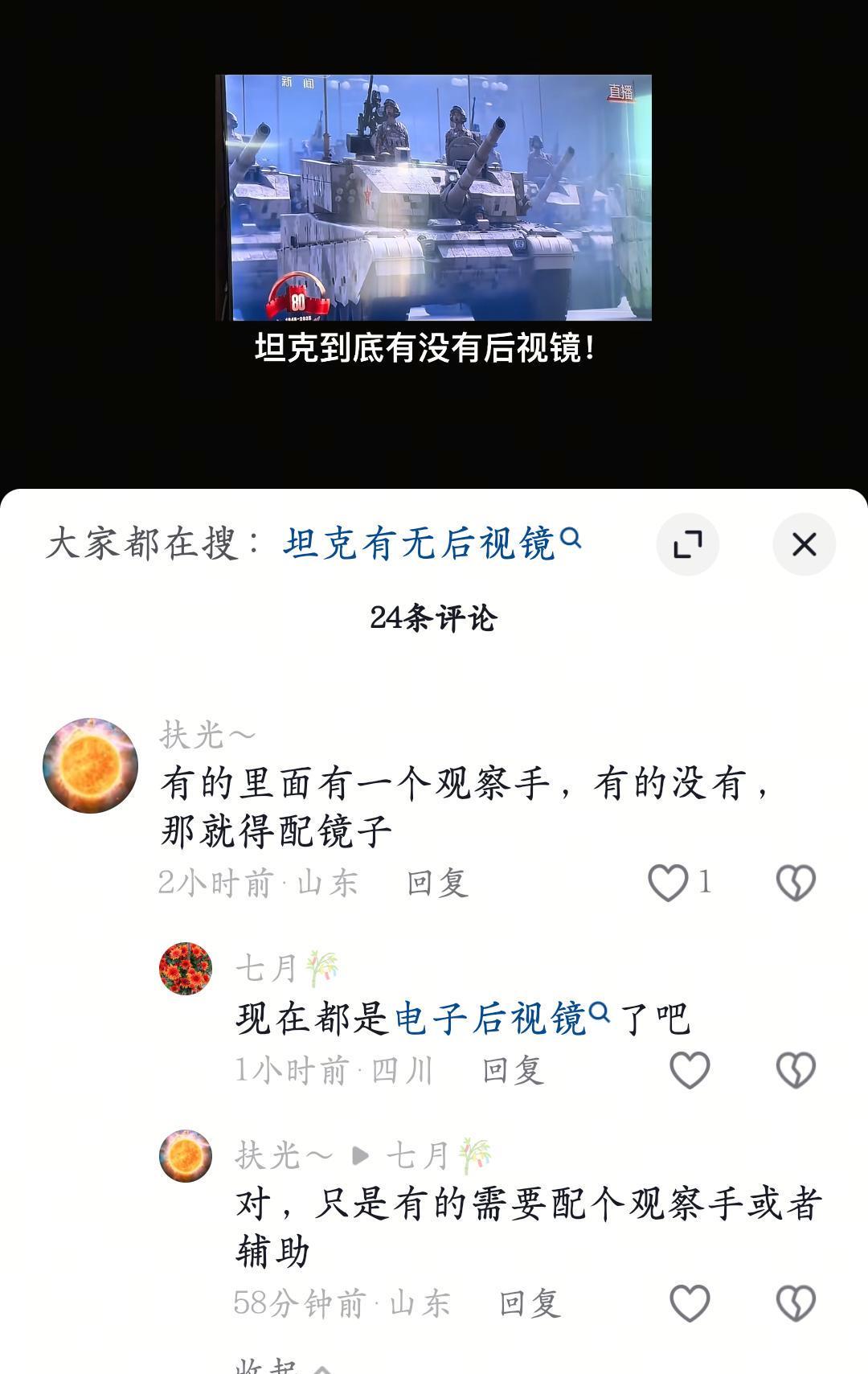 虽然这句话是在调侃,但也引发了一个疑问,那坦克到底有没有后视镜?或许这次的九三阅兵就是最好的答案。