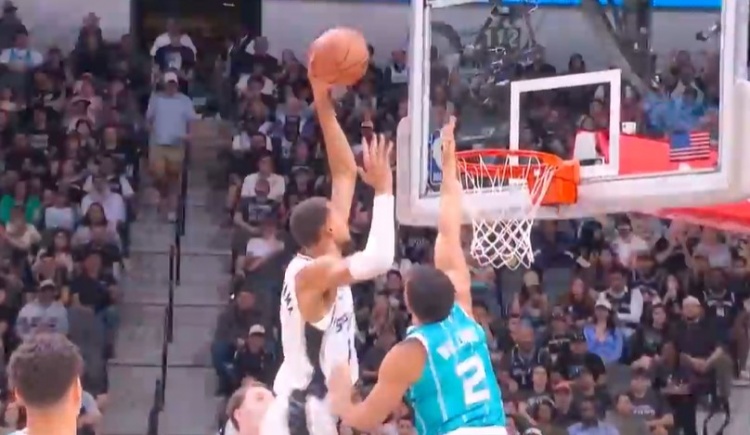 云开体育官网-我只是微微一笑~文班亚马单打格威 转身蹦起左手单臂隔扣很轻松!